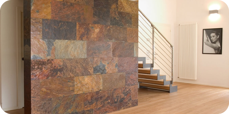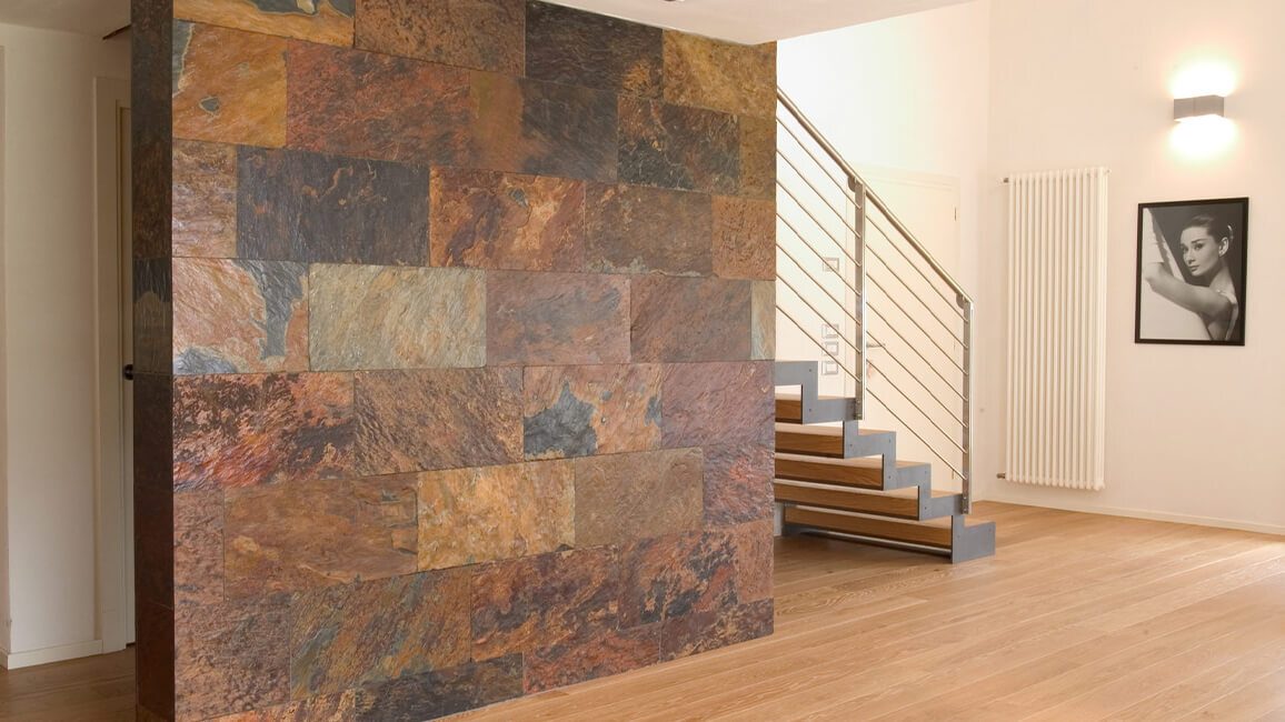 Гибкий каменный скол, каменный шпон - роскошный экологически чистый продукт, копирующий цвет и рельеф горных пород. Подходит для внешней и внутренней отделки, за счет легкого веса не перегружает стеновые поверхности. Высокий спрос обусловлен разумным сочетанием цены, высокого качества и эстетическими составляющими.