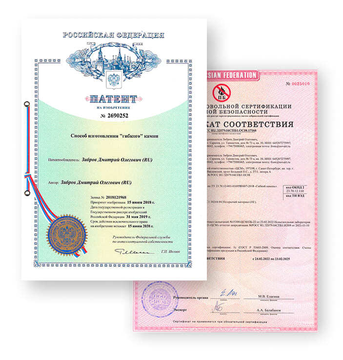 Гибкий камень - эксклюзивный продукт, который широко применяется для внутренней отделки, внешней отделки и создания различных предметов интерьера. Технология изготовления позволяет пополнить ассортимент позициями: “Гибкий камень”, “Каменные обои” и “Термопанели с рисунком”.